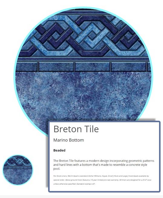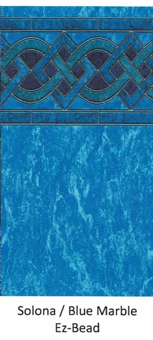 Beaded Liners are more decorated usually displaying a printed tiled pattern on top with a speckled side wall and or floor. Beaded liners come in 48"/ 50"/ 52" /54" wall heights. When measuring for this type of liner it is Important to measure from the "Actual" Outside Wall base to the "actual" top of the wall. You may have to dig out an area on the outside in order to get an accurate measurement. A beaded liner could be used in an overlap type pool by installing Bead Receiver Track to the Top of the Pool Wall in order to accept the new Liners Bead.